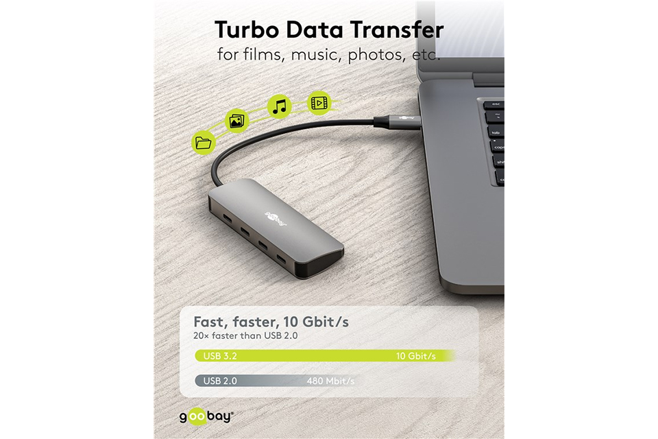4-ports USB hubb slim med kabel (USB-C, 5 Gbit/s) GB-76565: 4-ports USB hubb slim med kabel (USB-C, 5 Gbit/s)