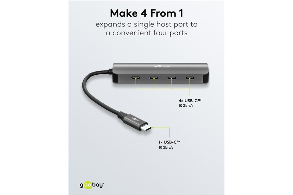 • Utökar en enda USB-C™-port till fyra USB-C™-anslutningar