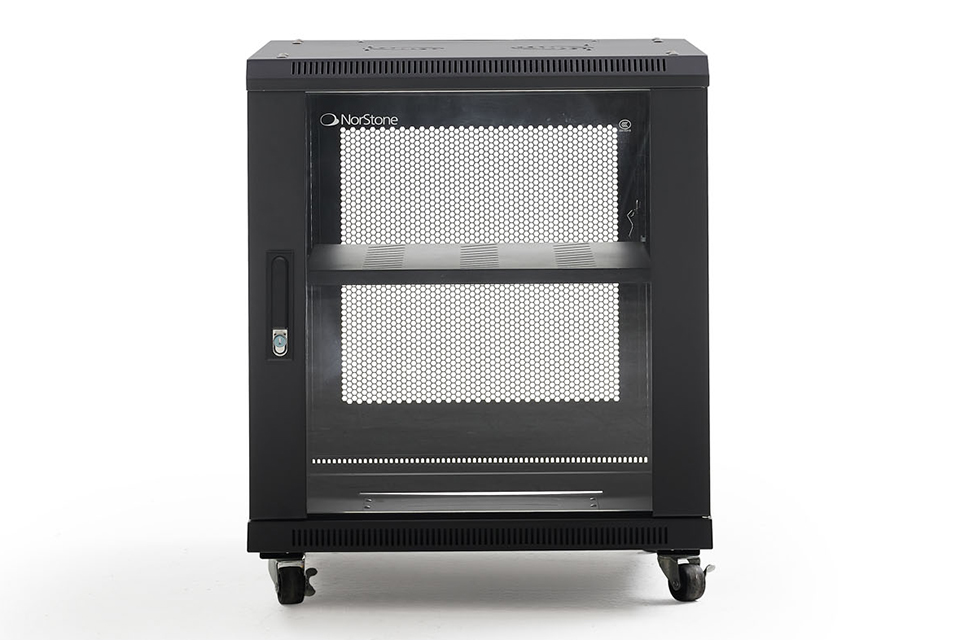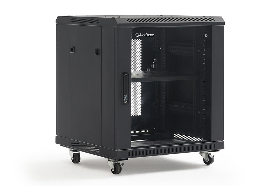 Höjdpunkter:• Rymmer upp till 12 enheter i 19” format• Integrerade toppmonterade ventilationsgaller med 2 fläktar • Inkluderar 80 mm hjul och justerbara fötter • Avtagbara sidopaneler för enkel installation och kabeldragning • Härdad glasdörr med nyckellås och fjärilshandtag • Justerbara 19” profiler fram och bak (max djup 540 mm) • Vändbar dörröppning för flexibel placering Professionell Förvaring för 19” Utrustning:Detta 19” rackskåp med plats för upp till 12 enheter är den perfekta lösningen för säker och organiserad förvaring av din tekniska utrustning. Skåpet är utrustat med två integrerade fläktar i toppen som effektivt avlägsnar värme och håller temperaturen stabil. De avtagbara sidopanelerna gör det enkelt att installera och underhålla kablar, medan de justerbara 19” profilerna fram och bak ger flexibilitet i uppsättningen. Den härdade glasdörren med nyckellås och fjärilshandtag skyddar utrustningen mot obehörig åtkomst, och med en vändbar dörröppning kan skåpet anpassas efter rummets layout.Robust Konstruktion och Flexibel Installation:Skåpets solida stålkonstruktion och praktiska design gör det idealiskt för både professionella serverrum och hemmainstallationer. De medföljande 80 mm hjulen gör skåpet lätt att flytta, medan justerbara fötter säkerställer stabil placering. Ventilationsgaller på toppen och bakdörren ger optimal luftcirkulation, vilket förlänger livslängden på din utrustning. De stansade fyrkantiga hålen är redo för snap-in burmuttrar, vilket gör montering av komponenter snabb och smidig.Specifications:• Kapacitet: 12 enheter (19”)• Max användbart djup: 540 mm • Yttermått: 720 mm (höjd) x 600 mm (bredd) x 640 mm (djup) • 2 integrerade fläktar i toppen • Ventilationsgaller i bakdörren • Avtagbara sidopaneler • 80 mm hjul + justerbara fötter • Härdad glasdörr med nyckellås och fjärilshandtag • Vändbar dörr • Stansade fyrkantiga hål för snap-in burmuttrar Produkttester och länkar