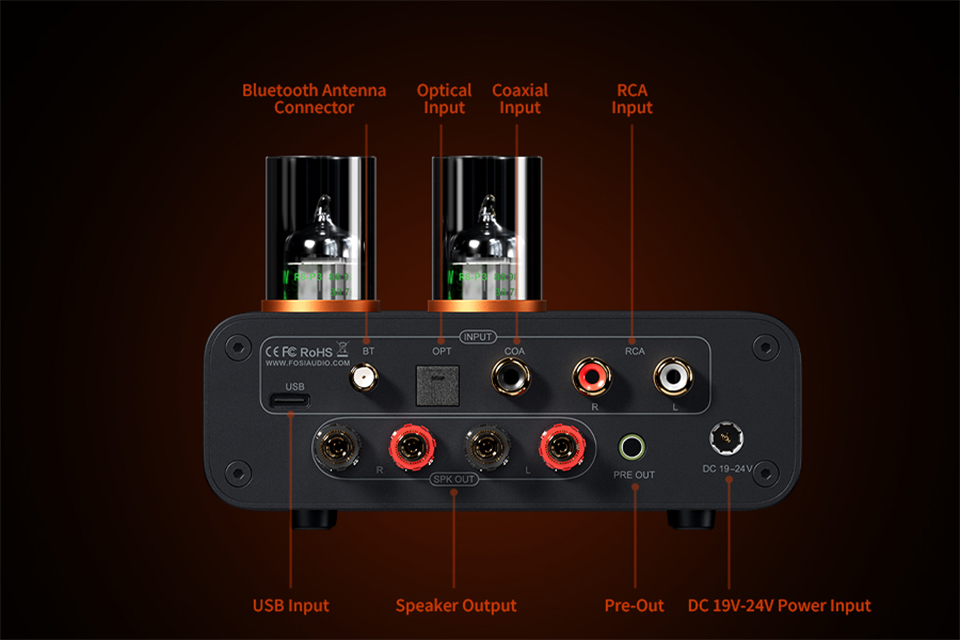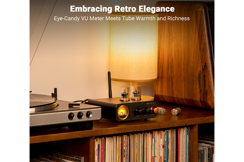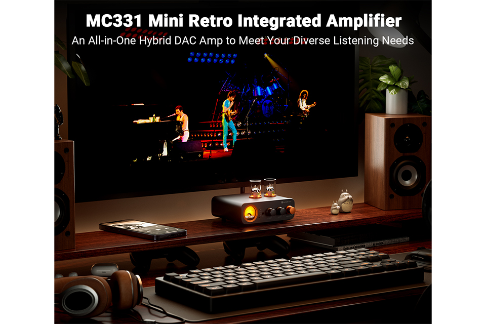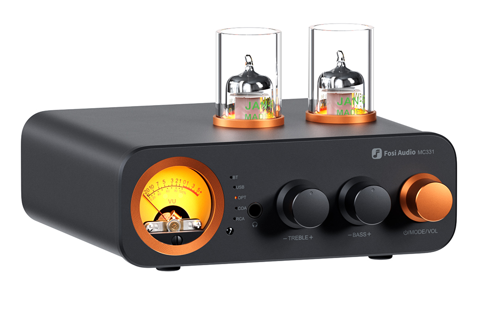 Höjdpunkter:• Kompakt rörförstärkare med DAC, hörlursförstärkare och förförstärkare i ett• Stöder RCA, Bluetooth, USB, optisk och koaxial ingång • VU-mätare och 5654W-rör för varm ljud och retro-look • Fjärrkontroll med bas- och diskantjustering • 105W x2@4Ohm uteffekt för bokhyllehögtalare • Pre-out och 3,5 mm hörlursutgång • Utbytbara rör för personlig ljudanpassning Kompakt allt-i-ett-ljudlösning:Fosi Audio MC331 kombinerar DAC, integrerad förstärkare, förförstärkare och hörlursförstärkare i en kompakt enhet. Med stöd för både analoga och digitala ingångar, inklusive RCA, Bluetooth, USB, optisk och koaxial, kan du enkelt ansluta allt från dator och telefon till CD-spelare och skivspelare med inbyggd phono-förförstärkare. Den kompakta storleken gör den perfekt för skrivbordet utan att kompromissa med prestanda.Retrocharm med modern teknik:MC331 ärutrustad med 5654W-vakuumrör och en stilren VU-mätare som ger en nostalgisk visuell känsla samtidigt som de bidrar till ett varmt och fylligt ljud. Kombinationen av klassisk rörteknik och dagens digitala ljudkällor skapar en unik lyssnarupplevelse som tilltalar både ögon och öron.Flexibel installation och kraftfullt ljud:Trots sin kompakta storlek levererar MC331 upp till 105W x2@4Ohm, vilket räcker för att driva de flesta bokhyllehögtalare. Den har även pre-out för enkelt 2.1-system och en 3,5 mm hörlursutgång. Med fjärrkontrollen kan du justera bas och diskant från din lyssningsplats och de utbytbara rören gör att du kan skräddarsy ljudprofilen helt efter dina önskemål.Specifikationer:• Max uteffekt: 105W x2@4Ohm• Ingångar: RCA, Bluetooth, USB, optisk, koaxial • Utgångar: Passiva högtalare, pre-out, 3,5 mm hörlurar • THD: =0,03% • SNR: =100dB • Mått: 10 x 2 x 2,7 tum • Impedans: 4-8 Ohm • Strömförsörjning: 24V/4,5A
