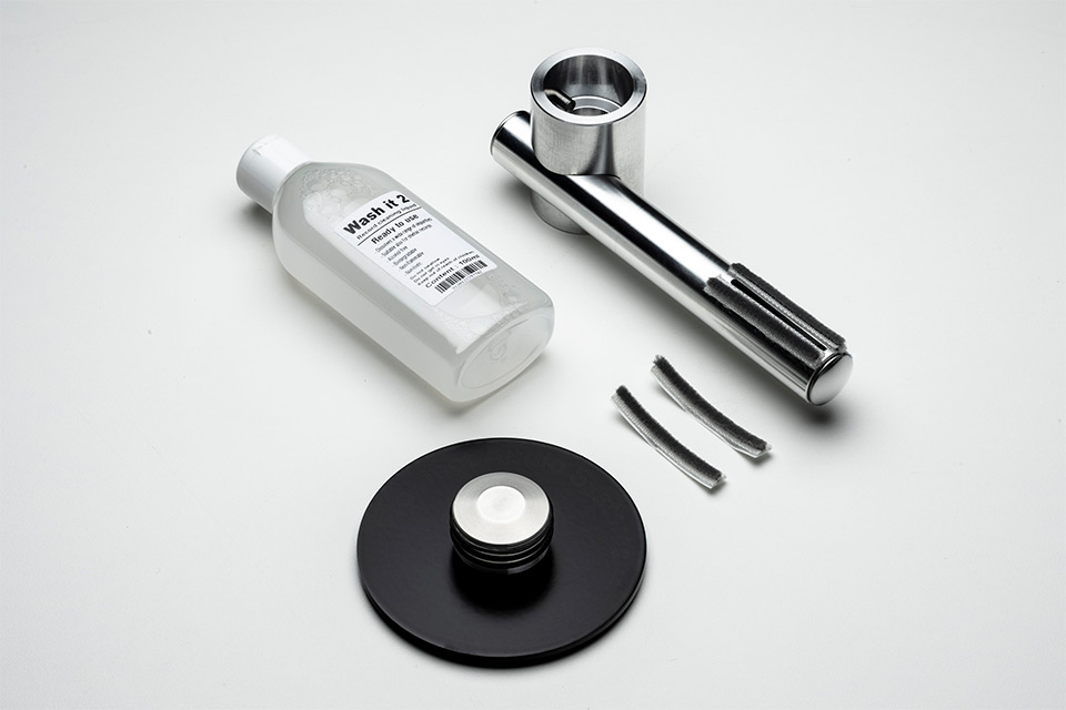Detta tillbehörsset är speciellt utvecklat för Pro-Ject VC-S3 skivtvätt och gör det möjligt att rengöra och underhålla 7" vinylskivor med maximal effektivitet. Satsen väger endast 0,5 kg och innehåller en dedikerad vakuumarm med förkortade sammetspads som säkerställer skonsam och grundlig rengöring av de små skivorna. Dessutom ingår en skivklämma som är anpassad för 7" skivor, eftersom standardklämman som följer med skivtvätten inte är kompatibel. För bästa resultat levereras satsen även med Wash It 2 rengöringsvätska (100 ml), utvecklad för att ta bort damm, smuts och statisk elektricitet från dina vinylskivor. Detta gör satsen till den ideala lösningen för vinylentusiaster som vill ha en komplett och professionell rengöring av sina 7" singlar på en Pro-Ject VC-S3 skivtvätt.