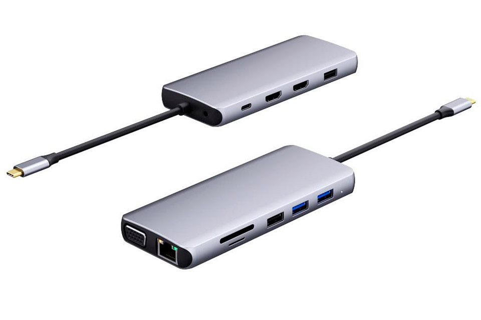 eSTUFF USB-C 12-in-1 hub/dock (USB-C – 2x HDMI / VGA / Jack / RJ45 / SD / USB-A/C) ES-ES623009: eSTUFF USB-C 12-in-1 hub/dock (USB-C – 2x HDMI / VGA / Jack / RJ45 / SD / USB-A/C)