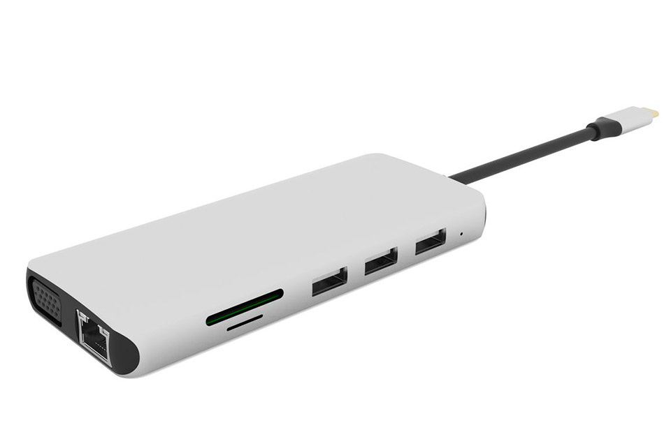 Den mångsidiga 12-i-1 USB-C-hubben är utformad för dig som vill ha maximal funktionalitet i ett kompakt format. Med totalt 12 portar förvandlar den din USB-C-laptop eller surfplatta till en komplett arbetsstation. De två HDMI 2.0-portarna stöder skärmar upp till 4K-upplösning vid 60 Hz, medan VGA-porten låter dig ansluta äldre skärmar eller projektorer. Den inbyggda Gigabit Ethernet-porten ger snabb och stabil anslutning, och de tre USB 3.2 Gen1-portarna gör det enkelt att ansluta tangentbord, mus eller externa enheter.