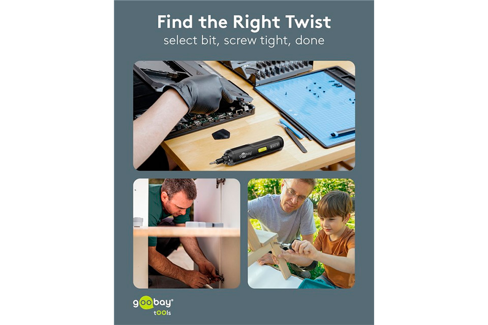 Höjdpunkter:• Kompakt och sladdlös skruvmejsel med 3-stegs vridmomentkontroll (1–3 Nm)• Integrerat LED-ljus för perfekt sikt under arbetet • Ergonomiskt gummerat handtag för bekväm användning under längre tid • 28-delars verktygssats i Cr-V-stål, inklusive bits, adapter och förlängningsstång • Levereras i en praktisk förvaringslåda med genomskinligt lock • Laddas via USB-C, drifttid upp till 45 minuter • Perfekt för möbelmontering, hobbyarbete och små reparationer Effektiv och kompakt skruvmejsel för alla uppgifter:Denna mini sladdlösa skruvmejsel är den perfekta hjälpen för både små och större gör-det-själv-projekt. Den smala, raka formen gör det enkelt att skruva i trånga hörn eller mellan möbler där vanliga verktyg inte räcker till. Med 3 vridmomentnivåer (1 Nm, 2 Nm och 3 Nm) kan du enkelt anpassa kraften efter uppgiften. Idealisk för möbelmontering, smarta heminstallationer och hobbyprojekt i verkstaden.Praktisk design och optimal komfort:Den ergonomiska designen med gummerat handtag ger ett stadigt och bekvämt grepp även vid längre användning. Det inbyggda LED-arbetsljuset belyser arbetsområdet och ger perfekt överblick även i mörka eller svåråtkomliga utrymmen. Med en vikt på endast 246 gram är den både kompakt och lätt att hantera.Komplett set i hög kvalitet:Setet består av 28 delar, inklusive 24 bits, en bitförlängare, en hållare och en adapter – alla tillverkade av robust krom-vanadiumstål (Cr-V) för maximal hållbarhet. Ett USB-C till USB-A laddningskabel (0,5 m) ingår också, vilket gör det enkelt att ladda det inbyggda Li-ion-batteriet (1,5 Ah). Allt levereras i en kompakt plastlåda med genomskinligt lock som gör det lätt att hålla ordning.Specifikationer:• Batterityp: Li-ion, 1,5 Ah (1500 mAh)• Drifttid: upp till 45 minuter • Laddningstid: ca 3 timmar • Vridmomentnivåer: 1 Nm, 2 Nm, 3 Nm • Spänning: 5 V DC (USB-C laddning) • Material: ABS, TPR, Cr-V stål • Ljus: Inbyggd LED • Mått: 184 x 36 x 38 mm • Vikt: 246 g • Färg: Svart • Skyddsklass: IPX0 • Arbetstemperatur: 0 °C till 40 °C • Inkluderar: 25 bits, bitförlängare, laddkabel (USB-C till USB-A), förvaringslåda Produkttester och länkar