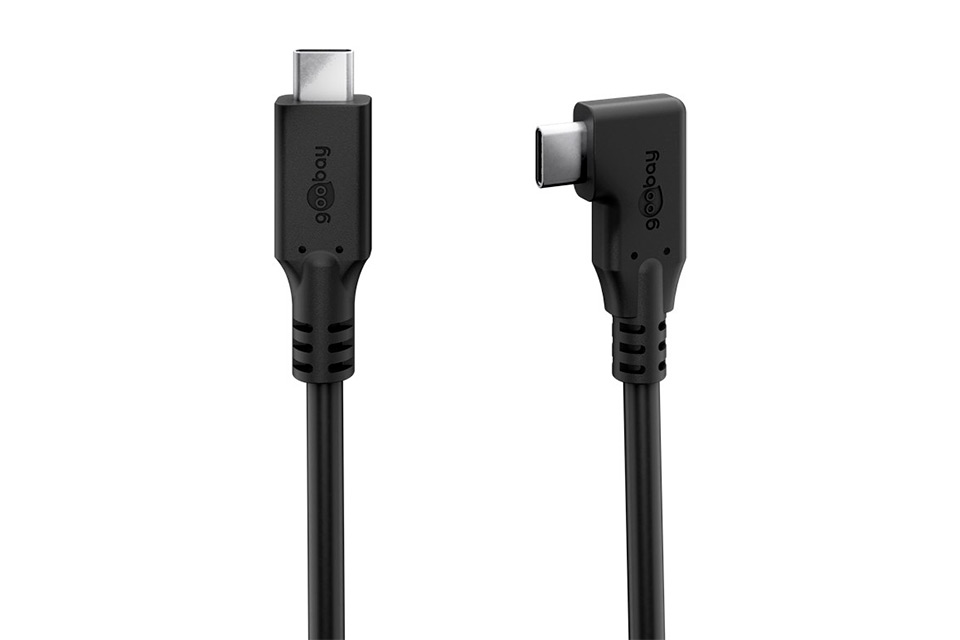 USB-C - Vinklad USB-C  kabel | Svart (100W, HighSpeed) | 1,00 meter GB-79430: USB-C - Vinklad USB-C kabel | Svart (100W, HighSpeed) | 1,00 meter