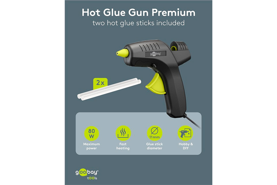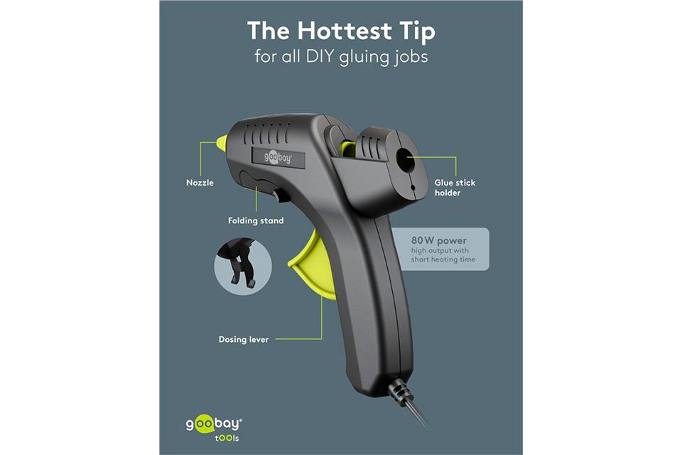 • Kraftig limpistol på 80 W för kreativa projekt och gör-det-själv-arbeten