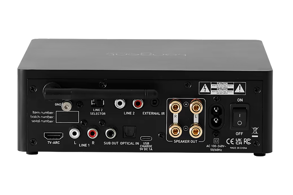 • Ingångar: HDMI ARC/CEC, optisk Toslink, 2 x RCA line-in, RIAA phono, USB-C (5V/1A)