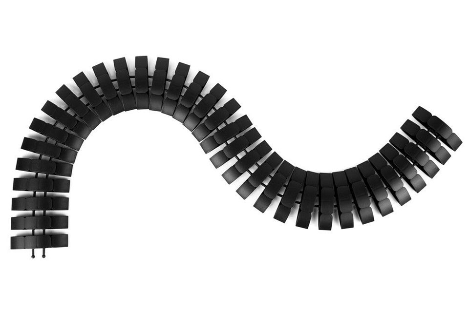 Höjdpunkter:• PRO kabelslang för professionell kabelhantering• 2-kammarsystem för separation av data och strömkablar • Ökad slagtålighet och hög belastningskapacitet • Belastning upp till 120 kg per 5 kedjelänkar • För horisontell och vertikal kabeldragning • Svart RAL 9005 i slitstark polypropylen • 1 meter utdragen längd Effektiv och flexibel kabelhantering för moderna arbetsplatser:Bachmann Cable Snake PRO är utvecklad för professionell kabelorganisation där ordning, säkerhet och funktion samverkar. Detta kabelhanteringssystem eliminerar lösa och trassliga kablar mellan skrivbord, golvboxar, väggkanaler och elektronisk utrustning. Kabelslangen säkerställer en strukturerad och diskret kabeldragning, både horisontellt och vertikalt, och passar perfekt i kontor, mötesrum och arbetsstationer med höj och sänkbara bord.Den robusta konstruktionen i polypropylen kombinerad med ökad slagtålighet gör lösningen lämplig även i områden med genomgångstrafik. Cable Snake PRO har en kortvarig belastningskapacitet på upp till 120 kg per 5 kedjelänkar, vilket understryker produktens styrka och hållbarhet. De 34 kedjelänkarna är konstruerade för att vara klämsäkra och justerbara i förhållande till varandra, vilket skapar en stabil och flexibel kabelkedja som följer rörelser utan att skada kablarna. Genomtänkt konstruktion med maximal säkerhet:Det integrerade 2-kammarsystemet möjliggör effektiv separation av data och strömkablar. Uppdelningen minskar risken för störningar och säkerställer optimal prestanda för både nätverkskablar och strömkablar. Den speciella geometrin i kabelkedjan förhindrar att enskilda kablar dras ut i sidled utan att hållas på plats, vilket ökar driftsäkerheten och livslängden.Kabelslangen kan anslutas direkt till Cable Snake Classic och ger därmed flexibilitet i befintliga installationer. Med en utdragen längd på cirka 100 cm och en hopfälld längd på cirka 70 cm anpassar sig systemet enkelt efter olika behov. Den svarta färgen i RAL 9005 ger ett stilrent och professionellt intryck som harmoniserar med moderna kontorsmiljöer och tekniska installationer. Specifications:• Material: Polypropylen• Färg: Svart RAL 9005 • Längd, utdragen: ca 100 cm • Längd, hopfälld: ca 70 cm • Antal kedjelänkar: 34 • Belastning: Upp till 120 kg per 5 kedjelänkar • System: 2-kammarsystem för data och strömkablar • Mått: ca 24 x 90 x 1000 mm (H x B x L) • Användning: Horisontell och vertikal kabeldragning • Förpackning: Individuellt packad i polybag